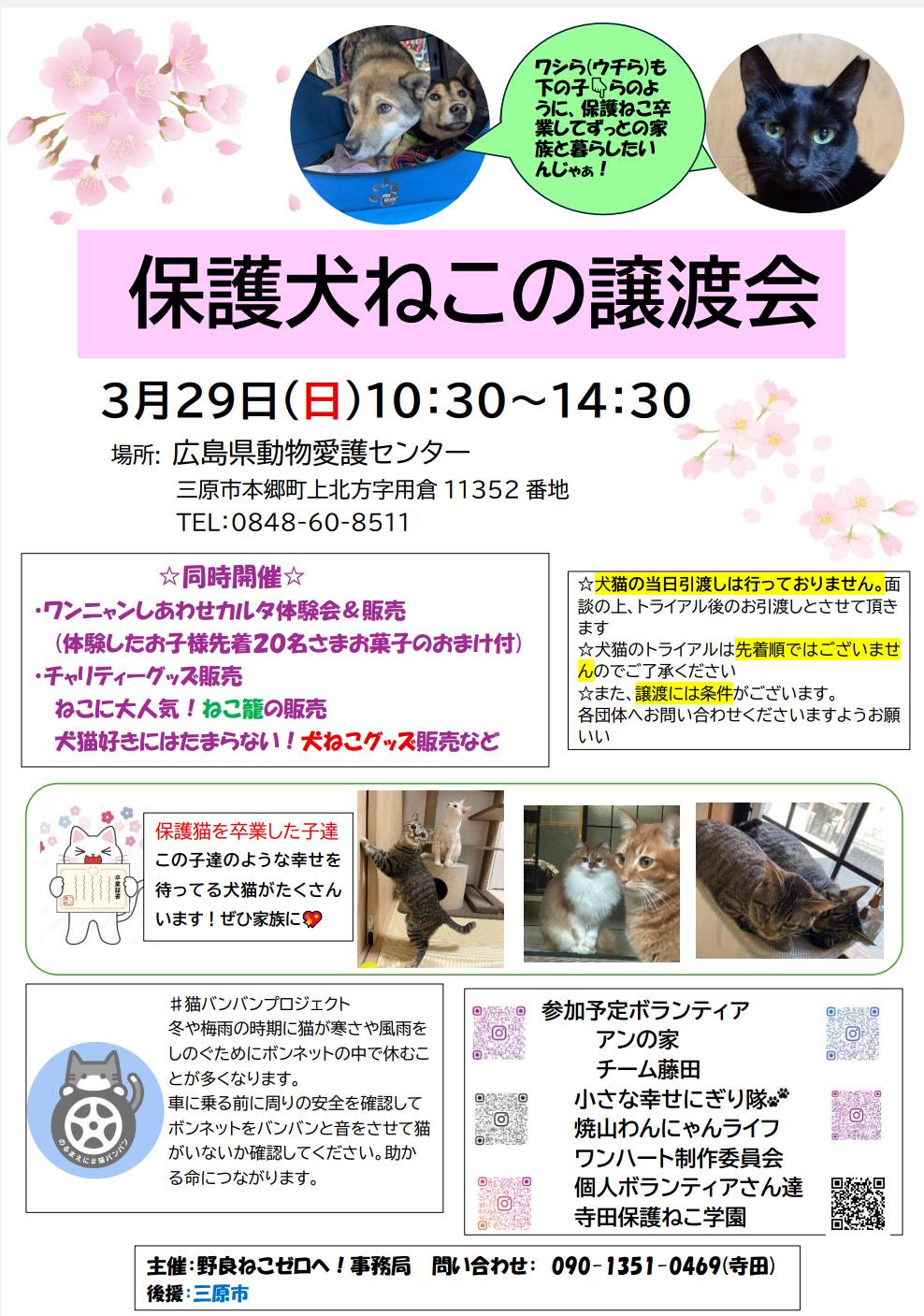 | 令和8年3月29日(日) 主催:野良ねこゼロへ!事務局 後援:三原市 |