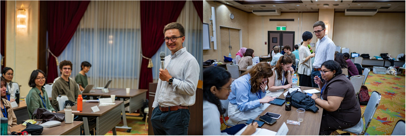 夜には、ICANアドボカシー担当官のフローリアン・エブレンカンプ氏よりICANについての講義が行われ、組織の成り立ちと歴史や現在の取組、今後取り組んでいきたいこと等について、お話をいただきました。中でも、若者が核兵器廃絶のために果たす役割は非常に大きいと話したうえで、活動をしていくにあたり、政府や周囲にどのように働きかけを行っていくべきかという事について言及されました。