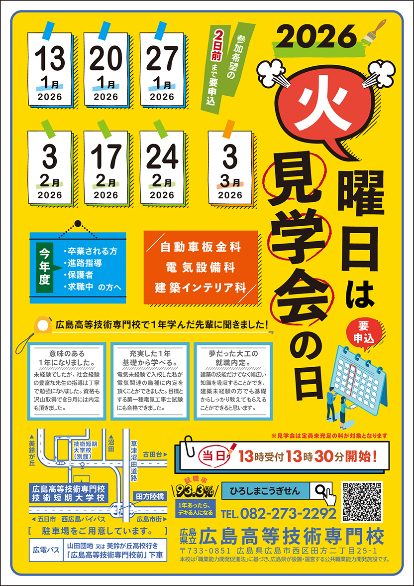 広島高等技術専門校では、施設内訓練を広く知っていただくために、見学会を開催します。