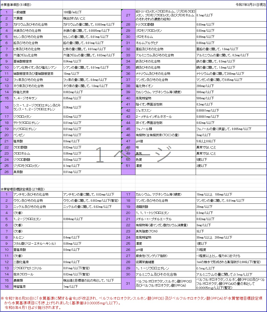 令和6年度 水質基準(51項目)、水質管理目標設定項目(27項目) (その他のファイル)(3.63MB)